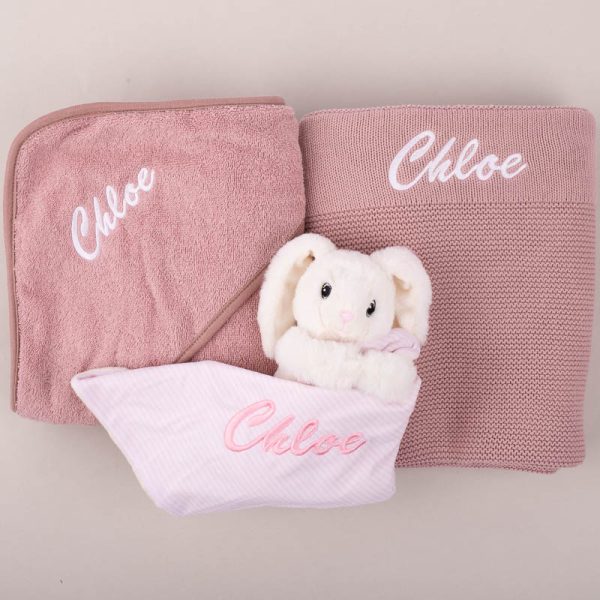 The Blush Pink Knitted Blanket, Blush Pink Hooded Towel & Bunny Baby Gift combines three adorable and useful items for baby girls. Made from quality cotton, the Personalised Blush Pink... Continue reading