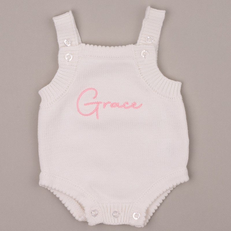 Personalised White Knitted Baby Girl Romper